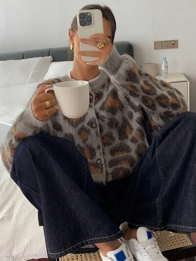 Vintage Single-Breasted Leopard Print Cardigan Sweater, Winter New Arrival-35%