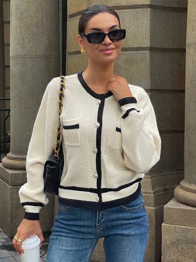 Women's Elegant Contrast Color Cardigan, Autumn-35%