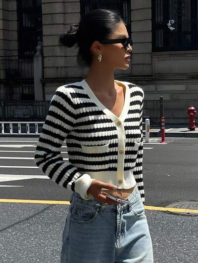 Women's Elegant Solid Color Sequin Button Cardigan, Autumn/Winter