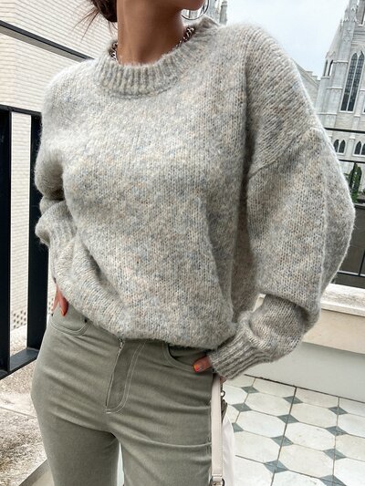 Marled Knit Drop Shoulder Sweater,Long Sleeve Tops,Fall Women Clothes-60%