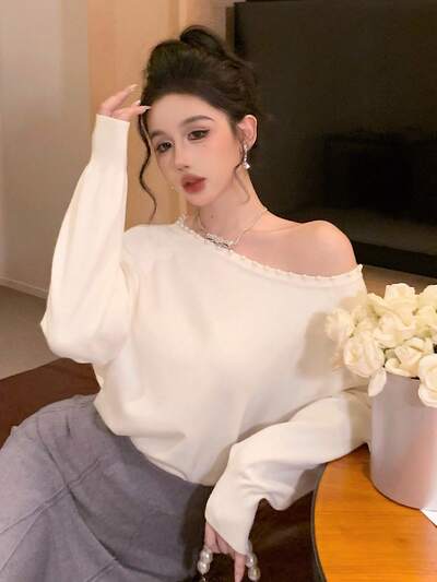 Autumn/Winter Versatile Round Neck Halter Tie Design Loose Fit Long Sleeve Sweater For Women,Fall Women Clothes-55%