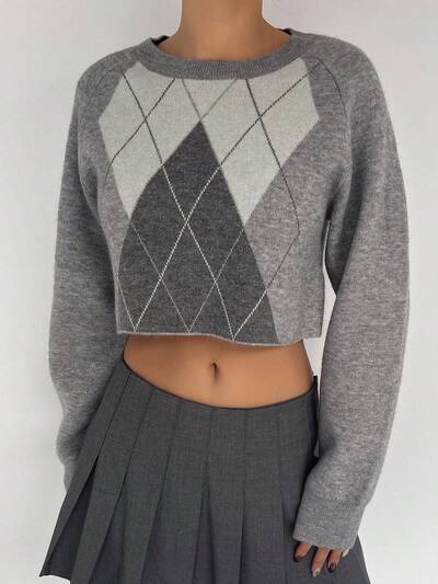 Women Crew Neck Contrast Letter Design Casual Knitted Sweater, Autumn,Fall Women Clothes Christmas,New Year