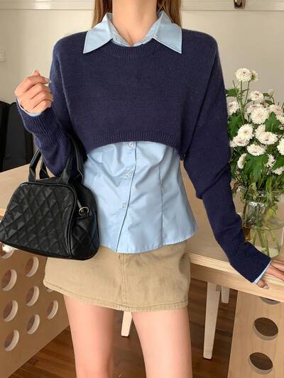 Women's Crew Neck Short Cropped Knit Sweater,Fall Clothes-60%