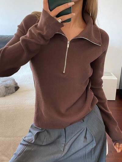 Women's Half Zip Turtleneck Sweater, Soft & Fitted, Layering Piece For Autumn/Winter-47%