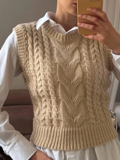 Women's Casual Crew Neck Cable Knit Vest, Autumn/Winter-66%