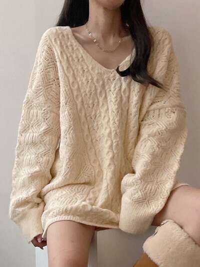 Women Casual V-Neck Batwing Loose Ribbed Knitted Pullover Sweater, Suitable For Autumn/Winter-35%