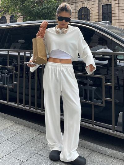 Simple Solid Color Frill Trim Women's Loungewear Set-56%