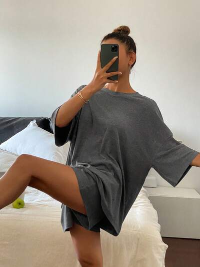 Minimalist Comfortable Ribbed Knit Fabric Loose T-Shirt & Shorts 2 Pieces Pajama Set For Women-23%