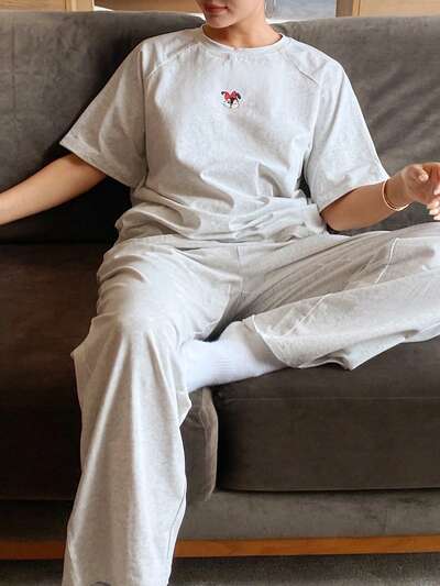 Cute Cartoon Print Loose Raglan Sleeve Pajamas Set, Casual Homewear-22%