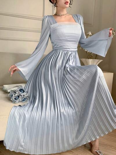 Women's Sweetheart Collar Long Sleeve Waist Cinched Elegant Dress Sundress Floral Dresses For Women