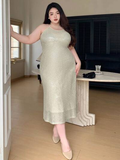 Dazy Plus Plus Size Women Sexy Fitted Sequin Party Long Camisole Dress Party Women Sundress Homecoming Dresses Prom Dress New Year Eve Dress Sparkly Dress Cocktail Dress