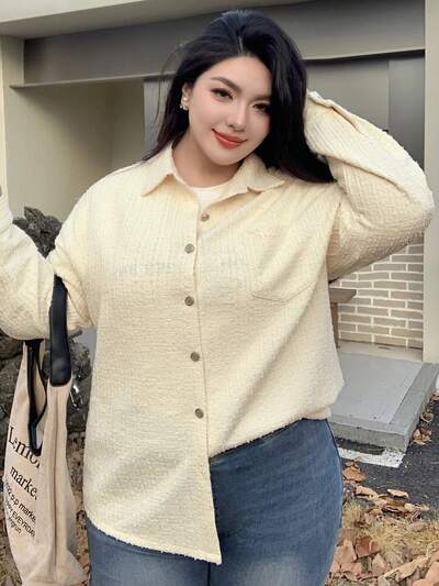 Dazy Plus Plus Size Solid Color Textured Fabric Loose Fit Blouse, Fall Women Clothes Long Sleeve Top-60%