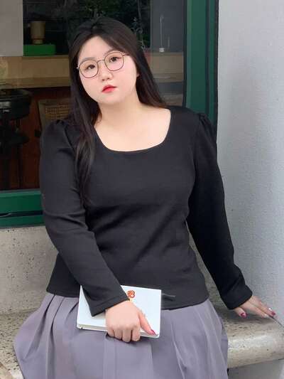 Dazy Plus Plus Size Women's Puff Sleeve T-Shirt With Square Neckline,Fall Clothes Long Sleeve Women Tops-60%