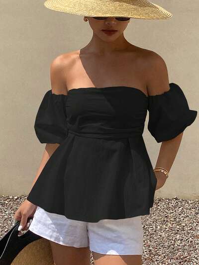 Women's Off Shoulder Puff Sleeve Tube Top Blouse, Suitable For Beach Vacation Babydoll Top Cruise Boho-37%