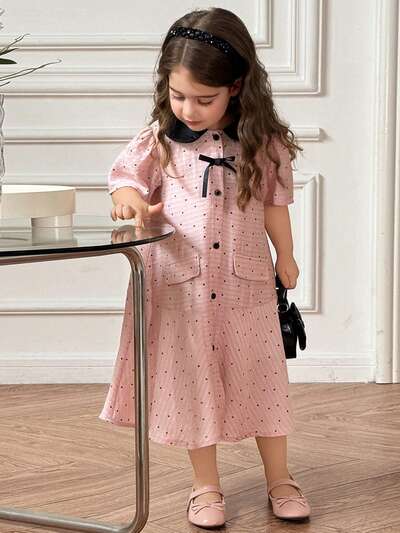 Young Girl Elegant Polka Dot Print Butterfly Decor Summer Dress-48%