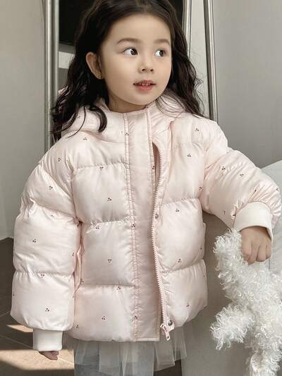 Young Girl Winter Full Print Hooded Padded Coat-46%