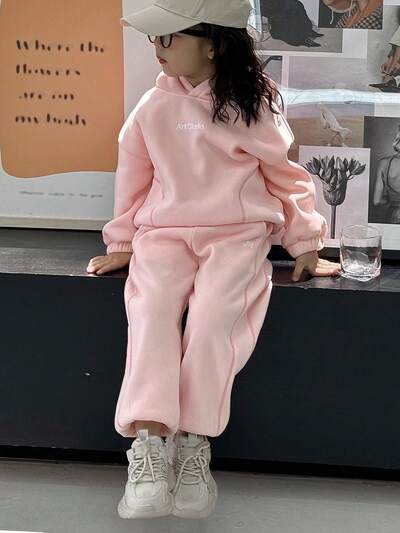 2pcs/Set Young Girls Knitted Thermal Lined Hoodie & Pants Set, Letter Embroidery-44%
