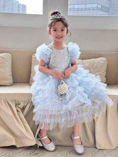 Girls Sleeveless Round Neck Mesh Tulle Dress, Young Girl Fall Clothes-55%