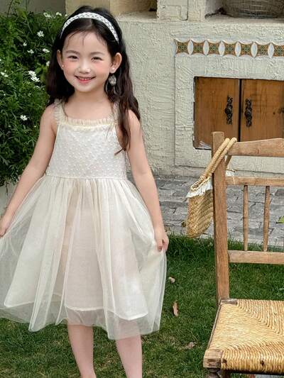 Sleeveless Mesh Patchwork Tank Dress With Mesh Skirt For Young Girl,Girls Summer Outfits-65%