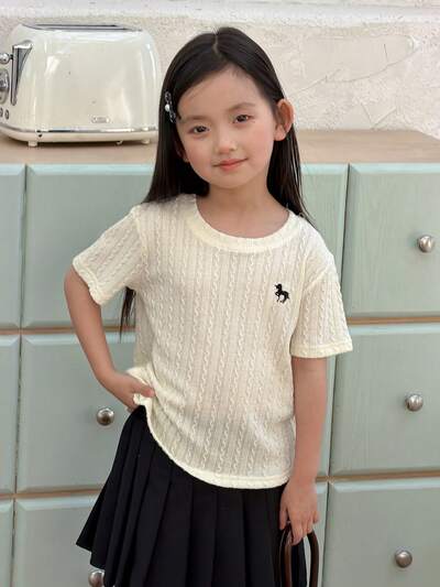 Young Girls Textured Crew Neck Short Sleeve T-Shirt Summer-47%