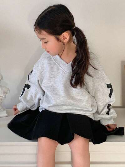 Young Girl' Round Collar Bowknot Graphic Sweatshirt, Fall-55%
