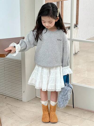 Young Girls Round Neck Ruffle Trim Contrast Color Streetwear Casual Korean Style Solid Color Patchwork Long Sleeve Sweatshirt-55%