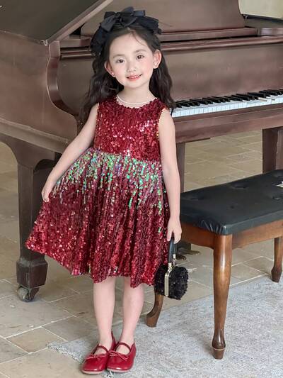 Girls Sleeveless Sequin Decor Party Dress, Summer-46%