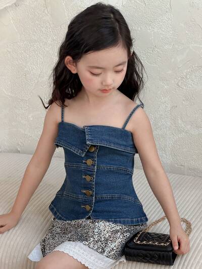 Girls' Denim Patchwork Strap Vest Summer-56%