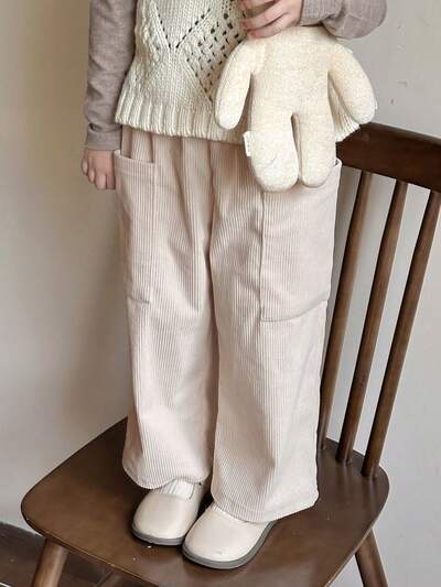 Young Girls Velvet Korean Style Casual Flared Ruffle Hem Pants, Autumn/Winter