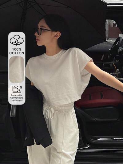 Women Solid Color Casual Daily Wear Short Sleeve T-Shirt For Spring And Summer Preppy Tops-36%