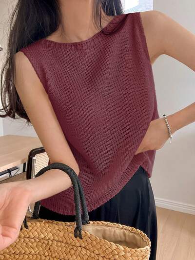 Summer Round Neck Solid Color Sleeveless Knitted Top-39%