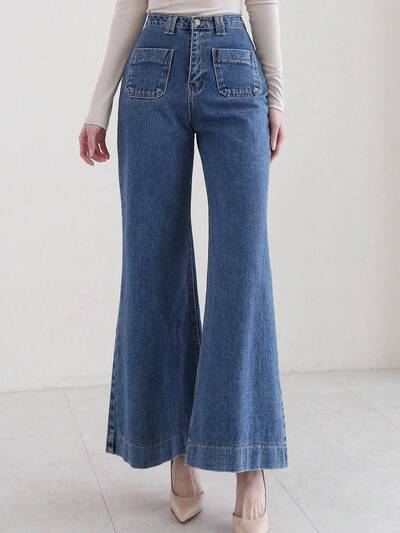 Dazy Plus Plus Size Distressed Washed Wide Leg Long Denim Jeans