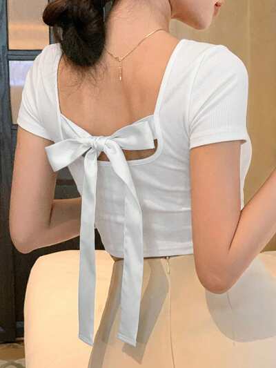 Women's Summer Backless Tie-Up Bow Sexy Casual Short Sleeve T-Shirt-39%