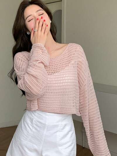 Hollow Out Cover Up Cover Up With Round Neckline Summer Sheer-36%