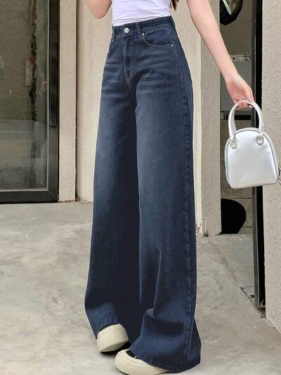Women's Casual Loose Wide Leg Jeans, Simple Fashion Everyday Wear Low Rise Jeans-46%