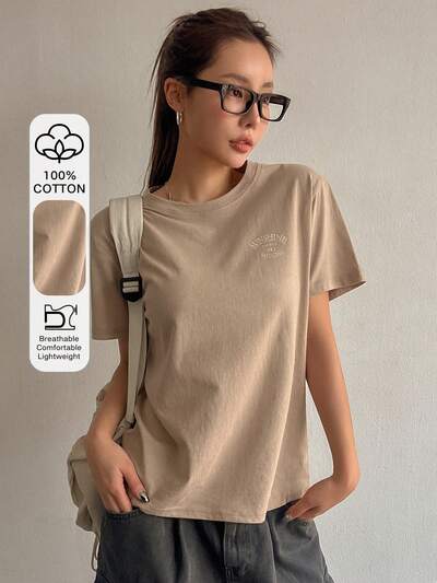 Women's Summer Casual Long T-Shirt Dress With Letter Print, Round Neck And Drop Shoulder Sundress-37%