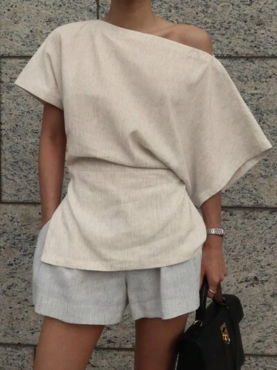 Solid Color Hollow Out Slim Fit Short Sleeve T-Shirt,Crop Tops Women