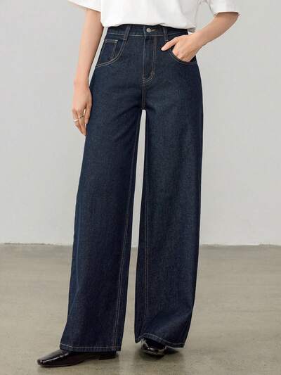 Women Solid Color Straight Leg Jeans Old Money Old Money Style Business Casual Woman-43%
