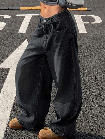 Loose Fit Straight Leg Women's Jeans,Baggy Jeans-25%