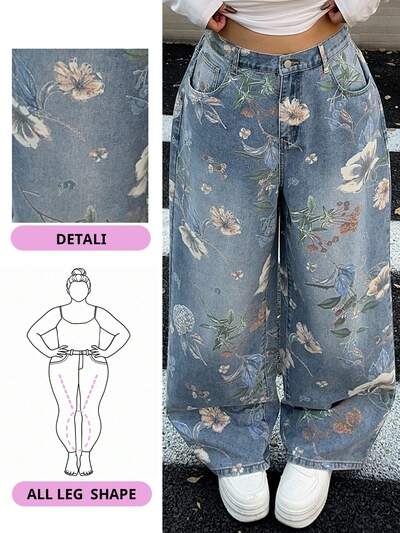 Valentine Floral Print Straight Leg Long Plus Size Women Jeans-31%