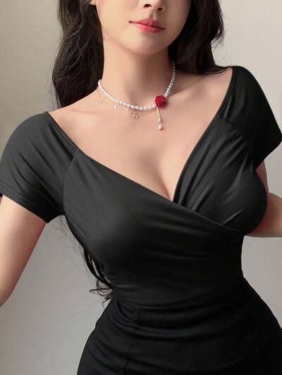 Women's Wrap Short Sleeve Bodysuit, Simple Stylish Design Suitable For Summer Vacation-49%