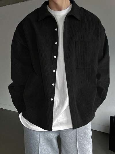 Men's Solid Color Button-Down Casual Shirt,Fall Clothes Long Sleeve Men Shirt-51%