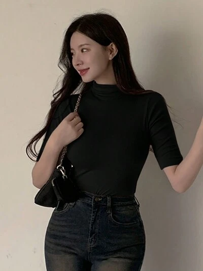 Women's Solid Colored Stand Collar T-Shirt Turtleneck Women-50%