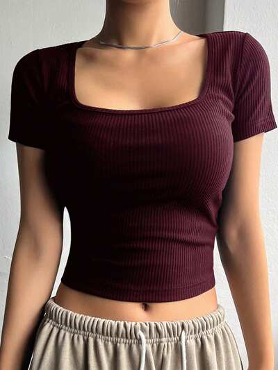 Solid Color Open Shoulder Tight Cropped Short Sleeve Women's T-Shirt Summer,Off Shoulder Top Going Out Tops Women-48%