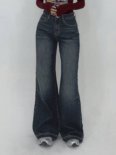Women's Casual Zip-Up Relaxed Fit Flared Leg Jeans-35%