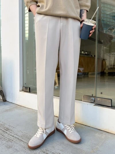 Herren Einfarbige Khaki Anzughose für Pendler, Herbst