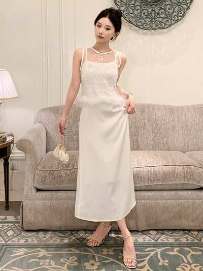 Elegantes schlankes Trägerkleid und ärmellose Mesh Transparent Bluse für Damen, Sommer, Damen Zweiteiler-60%