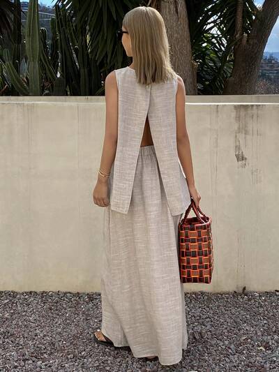 Frühlings-/Sommer-elegantes, lässiges Urlaubs-Strandset aus ärmelloser Bluse und Rock, romantisch, für Hochzeit, Pendeln, Old-Money-Stil für Frauen-60%