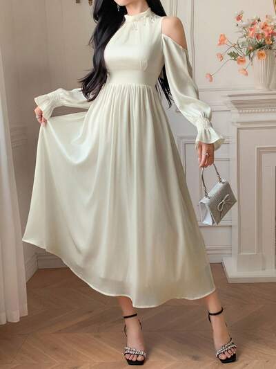 Damen V-Ausschnitt Lässig Minimalistische Midi-Länge Party Kleid Sommer