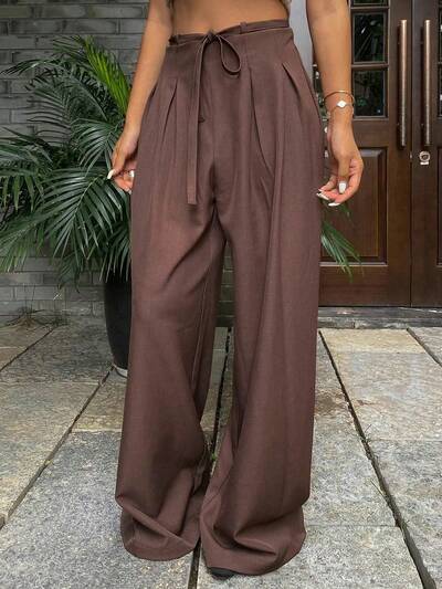 Weite Hose mit strukturierter Taille und weitem Bein für Damen, Herbstkleidung-25%